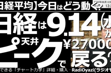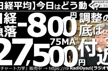 In INVESTMENT 【日経平均-今日はどう動く?】日経急落-800円!調整の底は27,500円(75MA)付近か? 昨夜出た、米CPIの数値が予想以上に高く、NYダウは1,200ドルの下落、ドル円は3円の急騰。この後は? 2022.09.14 …