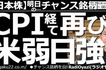 In INVESTMENT 【日本株-明日のチャンス銘柄】米CPI経て再び「米弱日強」に? 史上最悪とも言えるCPIを経て、米株市場が軟調になり、金利上昇で円安になっている。円安は日本株の買い材料。今後、株が買われる可能性あり? 2022.07.14 …
