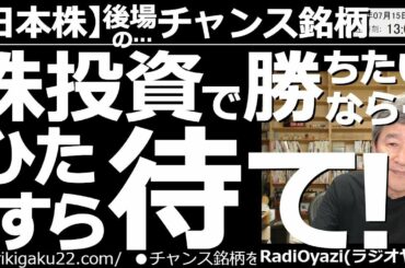 In INVESTMENT 【日本株-後場のチャンス銘柄】株投資で勝ちたいなら…ひたすら待て! 円安を背景に、日経平均は買いが優勢だ。昼の動画では株価5,000円以下の銘柄を中心に買いチャンスを探る。待ちの重要性を再確認しよう。 2022.07.15 …