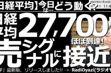 In INVESTMENT 【日経平均-今日はどう動く?】日経平均27,700円の「売りシグナル」にほぼ到達! 昨夜の米市場でNYダウなどが急騰。日経平均株価も+600円超の大幅上昇。先物、CFDの売りシグナルに、ほぼ到達した。 2022.07.20 …