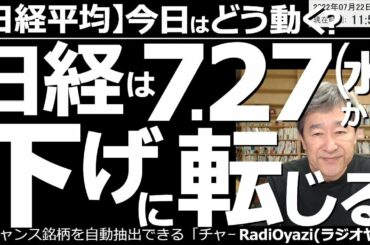 In INVESTMENT 【日経平均-今日はどう動く?】日経平均は7月27日(水)から「下げ」に転じる! 米市場が堅調で、日経も28,000円に迫る上昇を見せているが、7月26日にテクニカルがピークに達し、その後は下げやすい。 2022.07.22 …