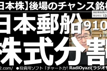 In INVESTMENT 【日本株-後場のチャンス銘柄】日本郵船(9101)が株式分割! 日本郵船が9月30日を基準日として1株→3株の株式分割を行うと発表。これを受けて株価が急騰している。このほかチャンス銘柄情報満載の動画。 2022.05.27 …