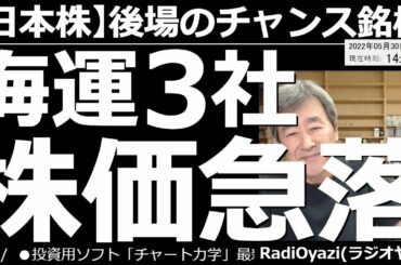 In INVESTMENT 【日本株-後場のチャンス銘柄】海運3社、株価急落! 日本郵船(9101)、商船三井(9104)、川崎汽船(9107)の海運3社が人気化しているが、今日はそろって反落。このあとどうなる?他の注目銘柄も。 2022.05.30 …