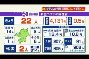 新型コロナの新規陽性者~福岡県22人 佐賀県1人