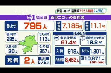 新型コロナウイルス・・・福岡県の陽性795人 死亡2人