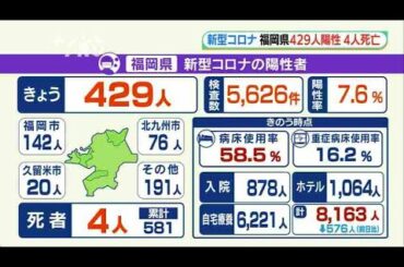 新型コロナウイルス・・・福岡県の陽性429人 死亡4人