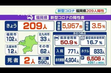 新型コロナウイルス・・・福岡県の陽性209人 死亡2人