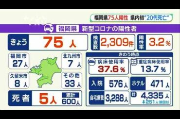新型コロナウイルス・・・福岡県の陽性75人 20代で初の死者