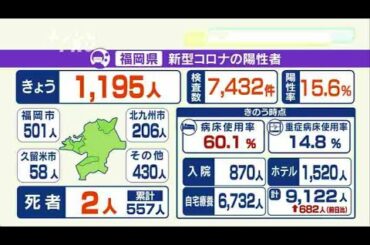 新型コロナ・・・福岡県の陽性1195人~3日連続1000人超