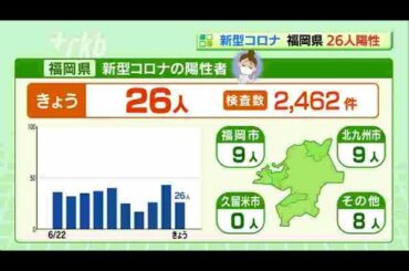 新型コロナウイルス・・・福岡県で陽性26人 佐賀県で6人