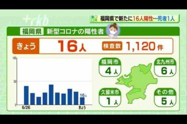 新型コロナウイルス・・・福岡県で陽性16人 死亡1人