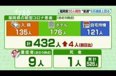 新型コロナ・・・福岡県 陽性50人~6日連続で前週の同じ曜日を上回る