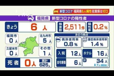 新型コロナの新規陽性者・・・福岡県6人 佐賀県29日連続ゼロ