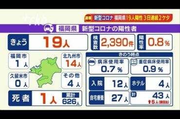 新型コロナの新規陽性者・・・福岡県19人 佐賀県37日連続ゼロ