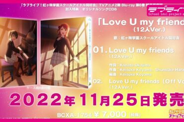 ANIME 2022.10.21 【試聴動画】Love U my friends(12人Ver.) / 虹ヶ咲学園スクールアイドル同好会(「ラブライブ!虹ヶ咲学園スクールアイドル同好会」TVアニメ2期 BD 第6巻特典CD6 )…