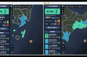 【緊急地震速報 (警報) / 津波注意報】福島県沖 最大震度6強 M7.4 2022/03/16 23:36