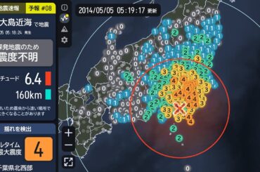【緊急地震速報 (予報) 】伊豆大島近海 最大震度5弱 M6.0 2014/05/05 05:18
