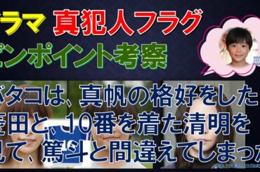 DRAMA 2022.02.24 【真犯人フラグ】ドラマ ~ピンポイント考察~ バタコは、真帆の格好をした菱田と、10番を着た清明を見て、篤斗と間違えてしまった【西島秀俊、芳根京子、宮沢りえ、生駒里奈、桜井ユキ、佐野勇斗】…