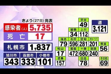 北海道の新型コロナ感染者5735人 先週土曜から1855人少なく減少傾向
