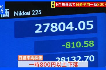 【速報】東京株式市場急落 日経平均株価 一時800円安 13日のNY市場ダウ平均株価の1276ドル下落受け|TBS NEWS DIG