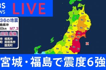 【LIVE】宮城・福島で震度6強【宮城県沿岸・福島県沿岸に津波注意報】