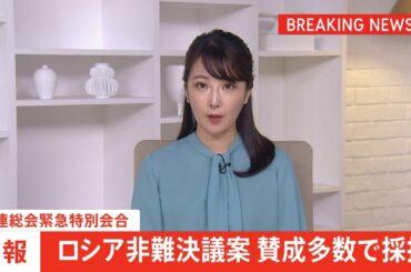 【速報】国連総会緊急特別会合 ロシア非難決議案 賛成多数で採択