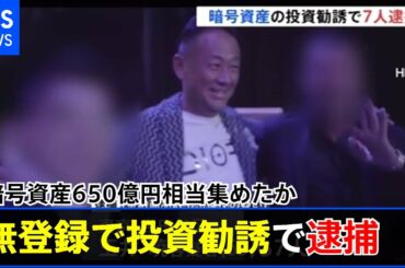 暗号資産650億円相当集めたか 無登録で投資勧誘疑いで7人逮捕