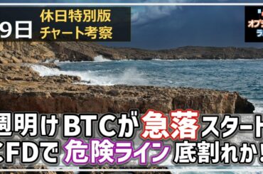 【休日特別版チャート考察】9/19 週明けビットコインが急落スタートに! 日経平均もCFDで危険ライン底割れか!?