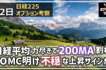 【日経225オプション考察】9/22 日経平均 力尽きてとうとう200MA割れ!しかしFOMC後に反転上昇あり得る不穏な上昇サインも!