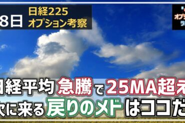 【日経225オプション考察】3/18 日経平均は連日の急騰で25MAを終値で上抜き! 次の戻りのメドはココだ!