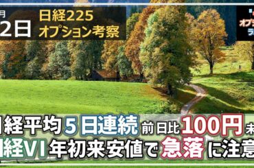 【日経225オプション考察】11/22 日経平均 5日連続で前日比100円未満の動き。日経VIは年初来安値で急落に注意!