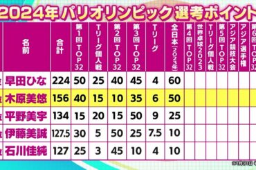 2024年パリオリンピック選考ポイント(1月31日収録時点)|卓球ジャパン!2023年2月18日