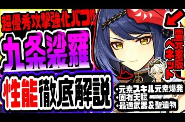 原神 雷元素版ベネット!最新版九条裟羅 元素スキル 元素爆発 固有天賦 おすすめ武器 聖遺物徹底解説 原神げんしん