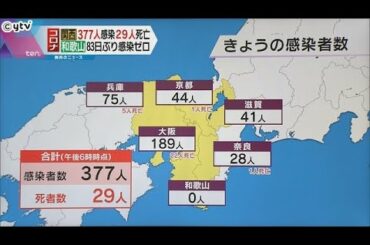 新型コロナ感染者数 近畿2府4県377人感染 29人死亡 和歌山83日ぶり「0」に